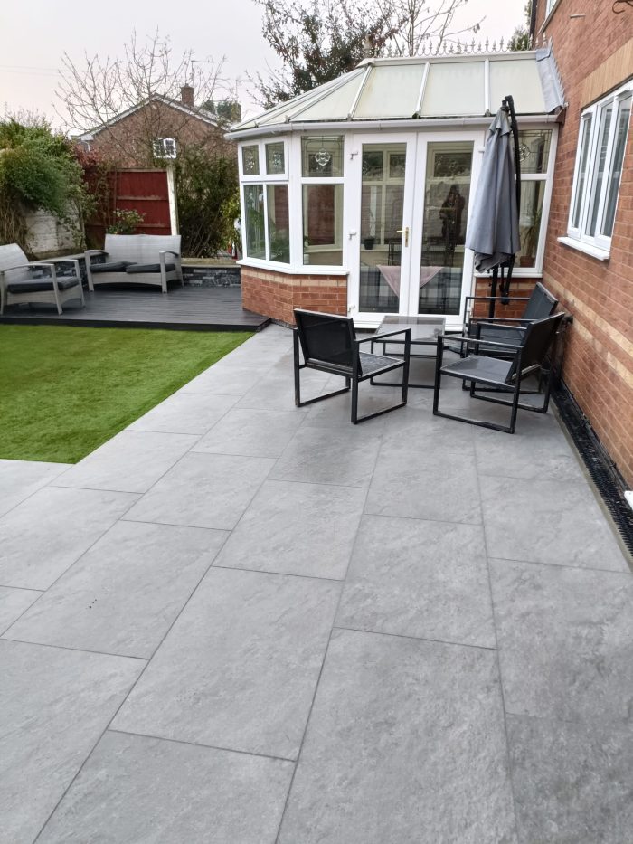 Graphite Grey Vitrified porcelain is ideal for a refreshingly modern Grey look with grey veins running through with natural stone characteristics. which has a slip-resistant texture and is a luxurious choice for any garden. We highly recommend our Porcelain range for any Bespoke Projects. It is ideal for indoors as well as outdoors – perfect choice for going around swimming pools. The pack gives 21.6m2 coverage consists of 600×900 with Thickness of 20mm. Fantastic veined texture surface very similar to that of natural stone. Our Porcelain is rectified and is high quality for your Patios, Garden Paving and Landscaping Projects from Direct Importers. All our products are suitable for British Weather conditions and they are frost resistant. We can also do Split Packs to match you exact meterage so you don’t need to order extra and waste it – Split Pack Fee Applies*. Also available in mix sizes packs, 600×600’s and bullnose steps.
