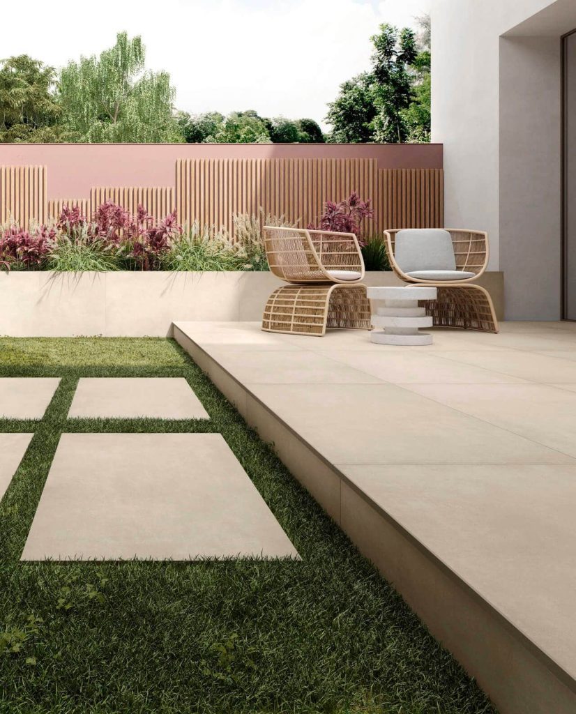 Large slabs such as 600×600, 900×600, or 1200×600 create fewer grout lines, giving your patio a clean, high-end finish.