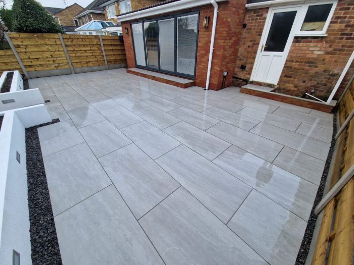 Our Kandla Grey Porcelain 1200×600 has a very modern appearance with light grey veins running through the tiles and an anti-slip textured surface, making this product a luxurious choice for any garden. We highly recommend our Porcelain range for any bespoke projects due to it being ideal for indoors as well as outdoors and a perfect choice around swimming pools. A full pack gives you 21.6m2 coverage and contains just one size; 1200×600, and a thickness of 20mm. Our Porcelain is a high-quality, vitrified product from direct importers, perfect for your patios, garden paving, and landscaping projects. All our products have been expertly tested to withstand all British weather conditions and are frost-resistant.
